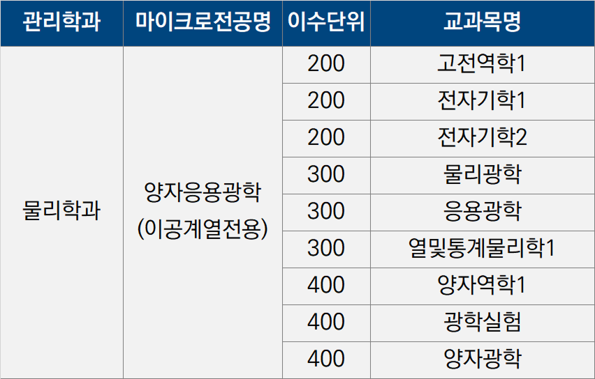 현대 광학 기술 및 양자광학은 초고속 대용량 데이터 처리 및 통신 시스템과 차세대 양자 정보 과학 및 컴퓨팅 기술의 근간이 된다. 본 마이크로 전공은 이에 요구되는 필수 지식의 기반을 세우고 관련 전문 지식을 습득하도록 하여, 자연/공학계열 학생들이 그들의 주전공과 함께 실효적 융합 역량을 계발할 수 있도록 한다.